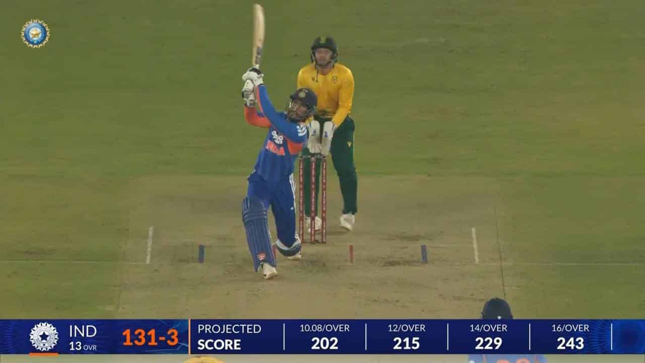 • IND vs SA 2025, 5th T20I: Tilak Varma Six