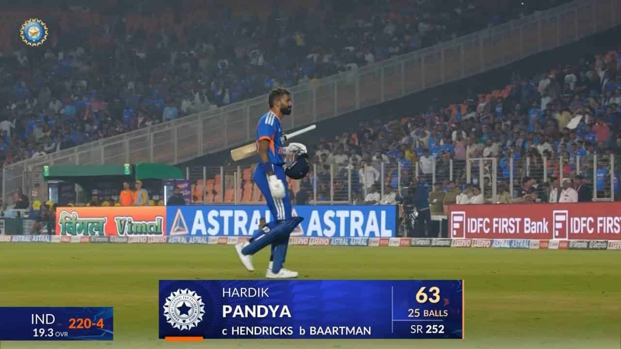 • IND vs SA 2025, 5th T20I: Hardik Pandya Wicket
