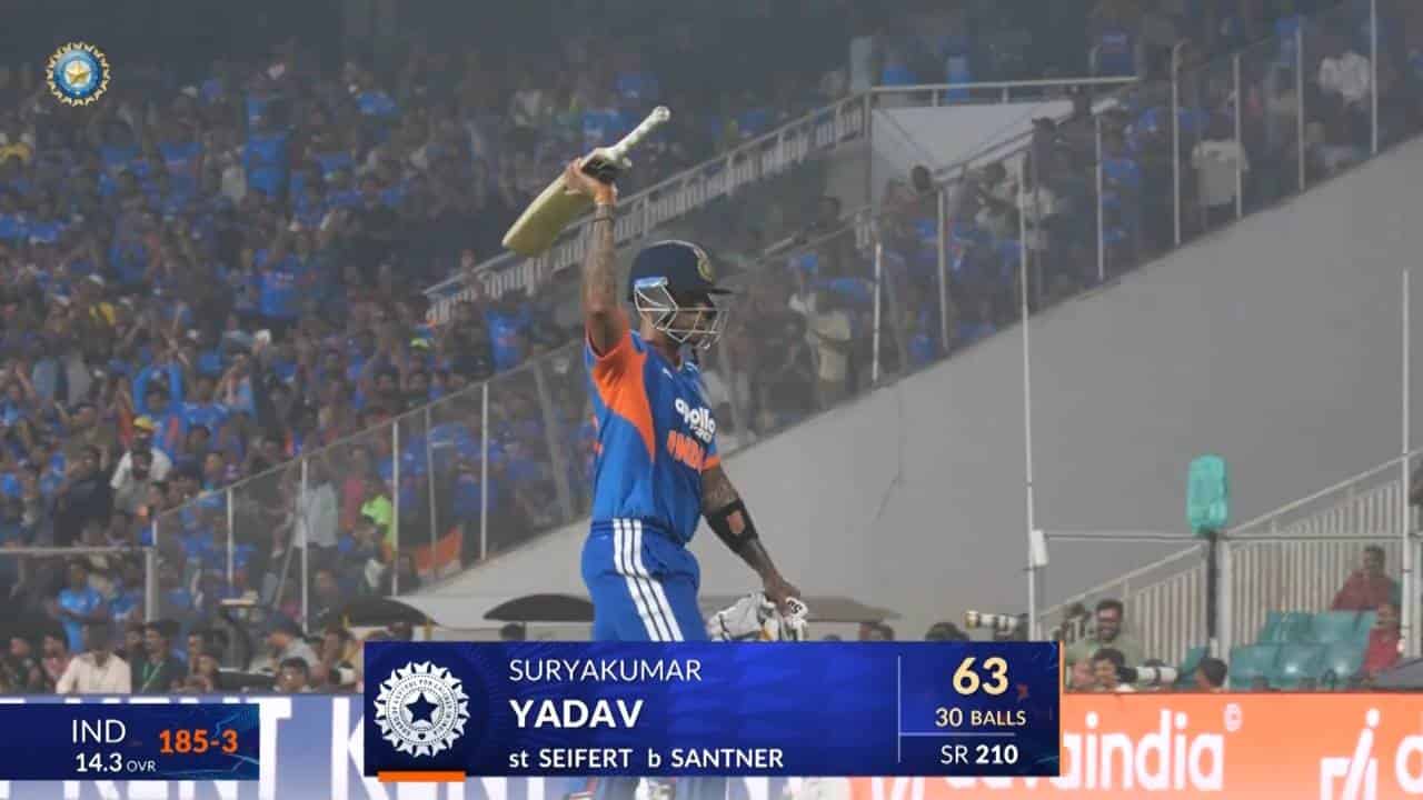 • IND vs NZ 2026, 5th T20I: Suryakumar Yadav Six