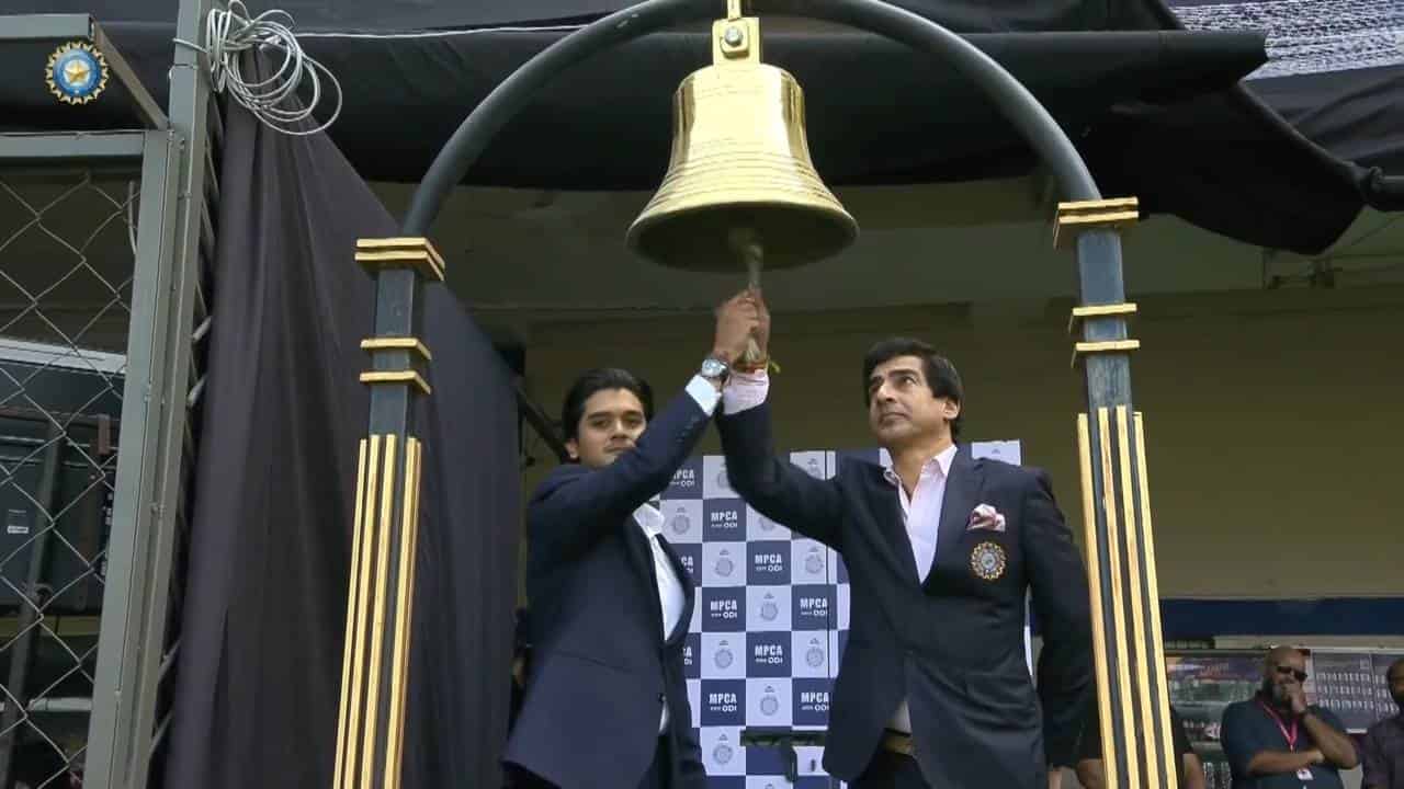 BCCI Hon. President Mithun Manhas rings the ceremonial bell to commence play in Indore