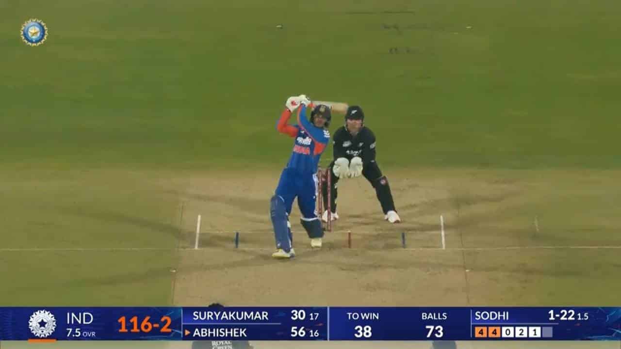 IND vs NZ 2026, 3rd T20I: Abhishek Sharma Six
